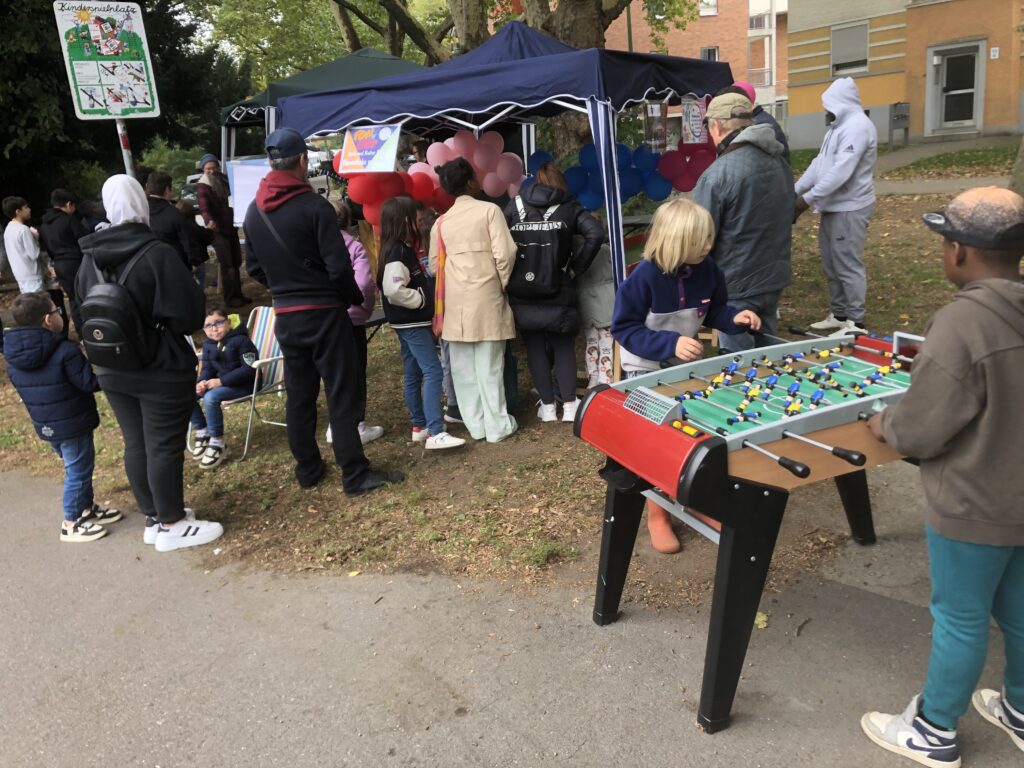 Wir waren zusammen mit FROHNZIMMER, CORALLE unseren „BÜNDNIS BÄRENDELLE“-Partnern und dem Boule-Club Essen-West dabei. Unsere Stände waren an der Ecke Riehlstrasse am Übergang zur Bärendelle. Wir boten unter anderem an: Kicker, Murmelbahn, Boulespielen für Anfänger
